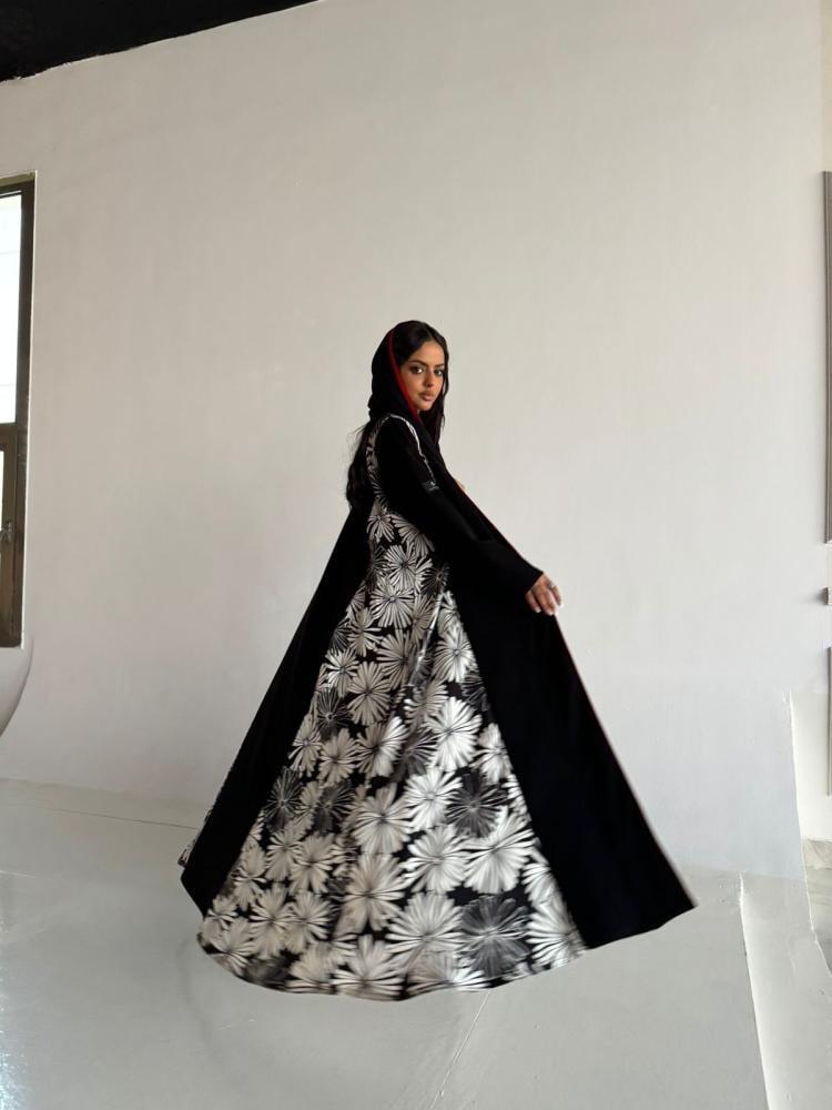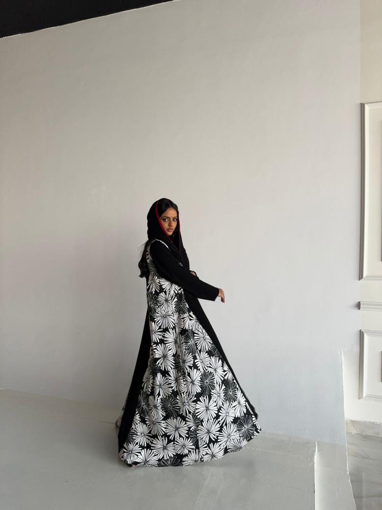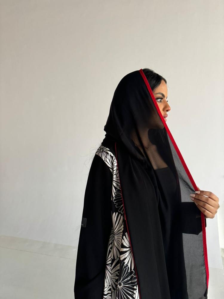 عبايه ورد الاقحوان مصممه باستخدام القماش الاسود السيراميك بقصه A وجوانب مرسومه على شكل ورد الاقحوان المبهر بتناغم الابيض والاسود بالقماش المستورد من لندن خصيصاً ويزود التصميم فخامه بتداخل الاطراف الحمراء الفاخره التي ستضفي على التصميم اناقه اخرى لمحبي الورود ✨