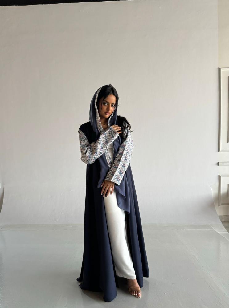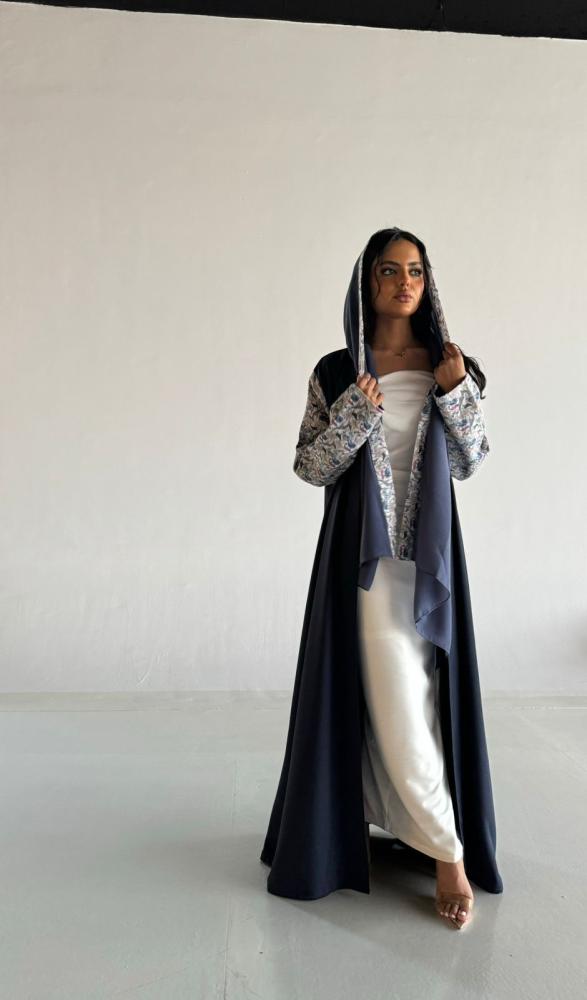عدد القطع 2 : عبايه مع طرحة ازرق بحري باطراف مماثله للاطراف