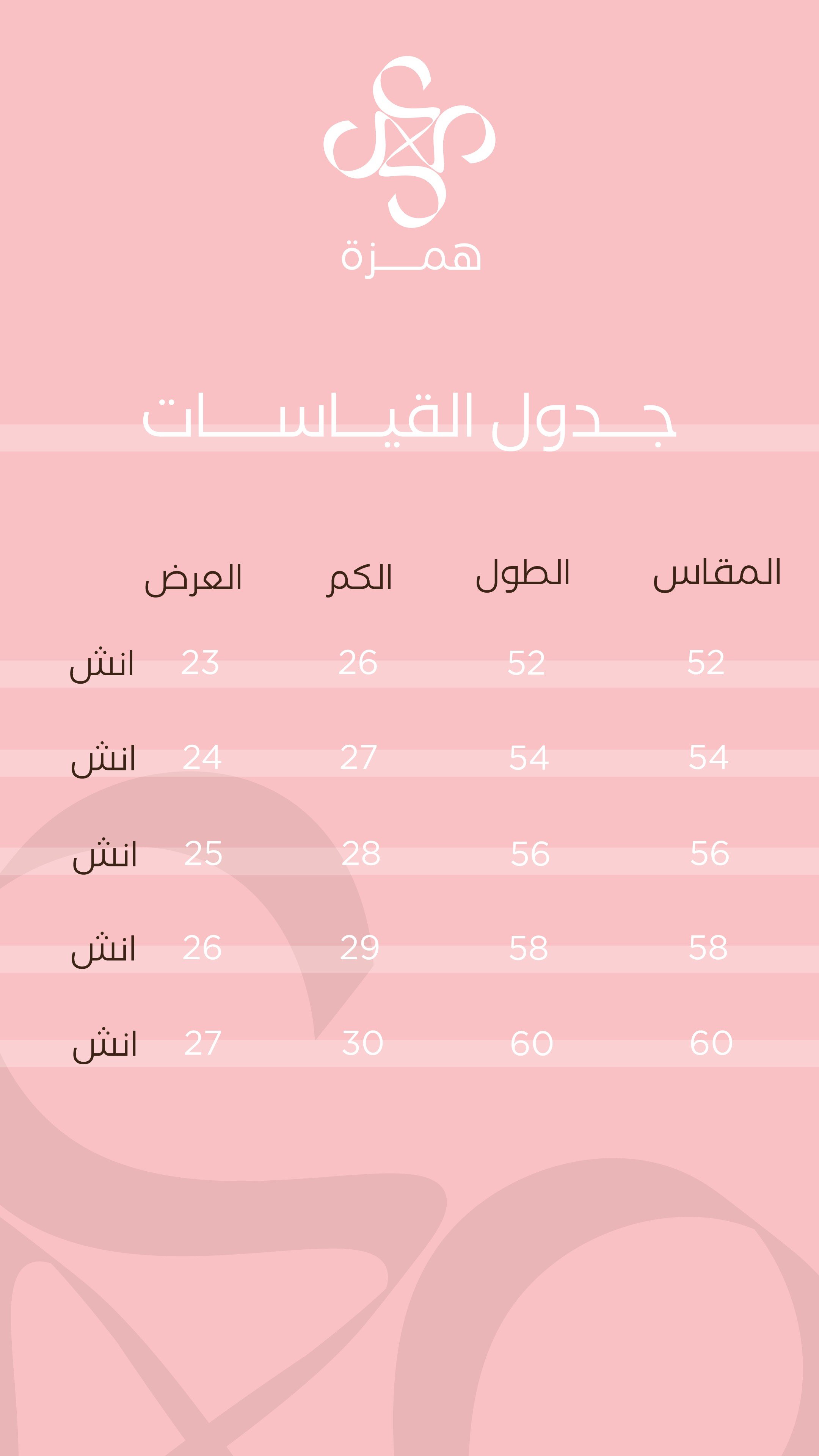 جدول القياسات
