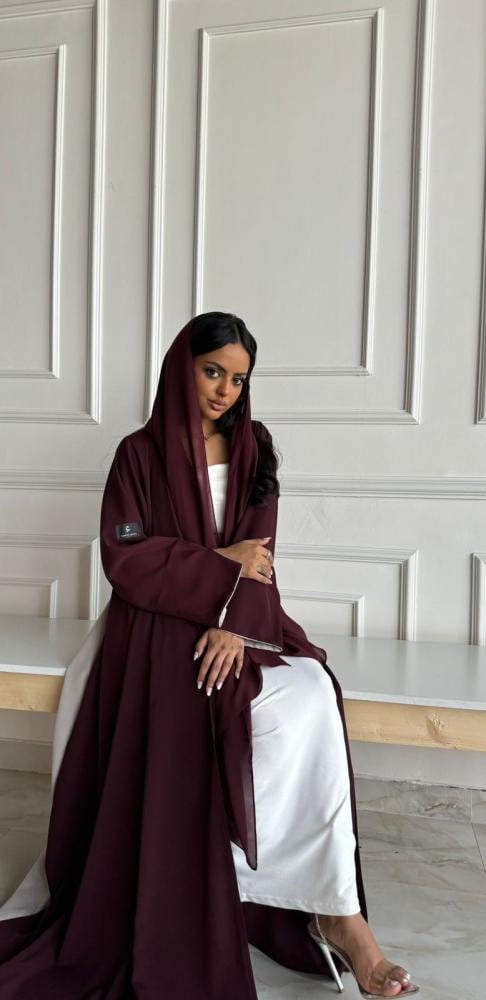 عدد القطع 2 : عبايه مع طرحة عنابي سادة